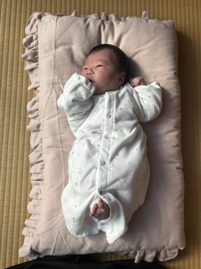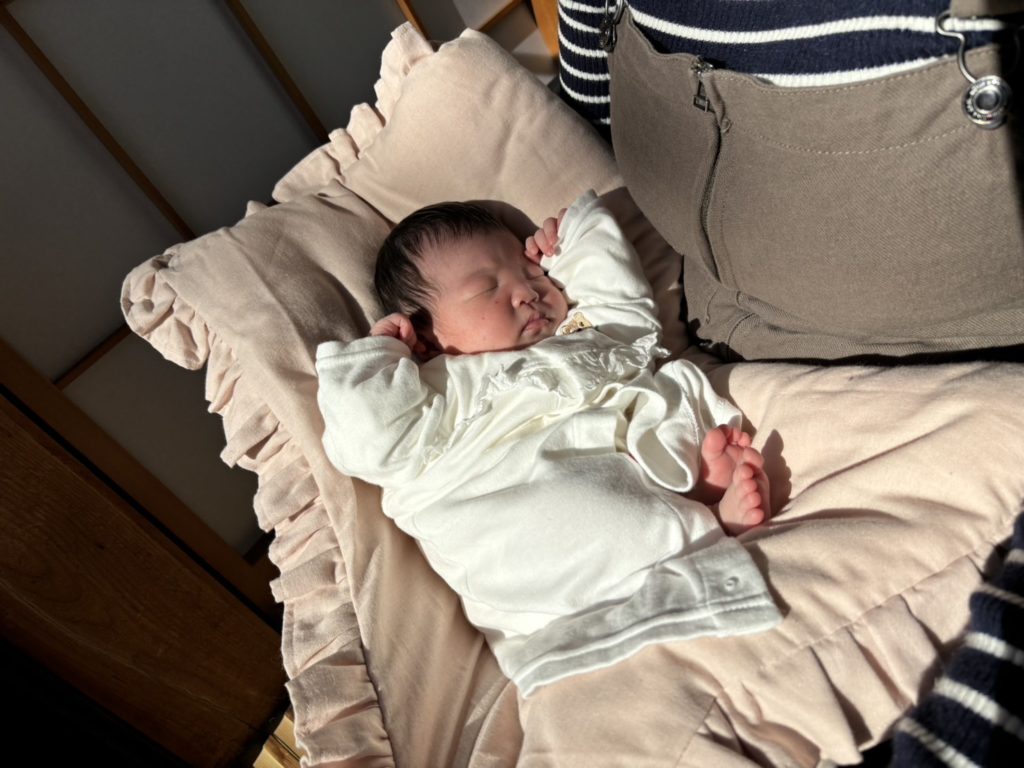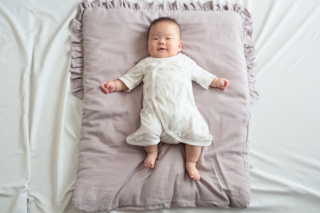 夜泣きでなかなか寝ない赤ちゃんを抱っこふとんに乗せて安心させてあげてください。