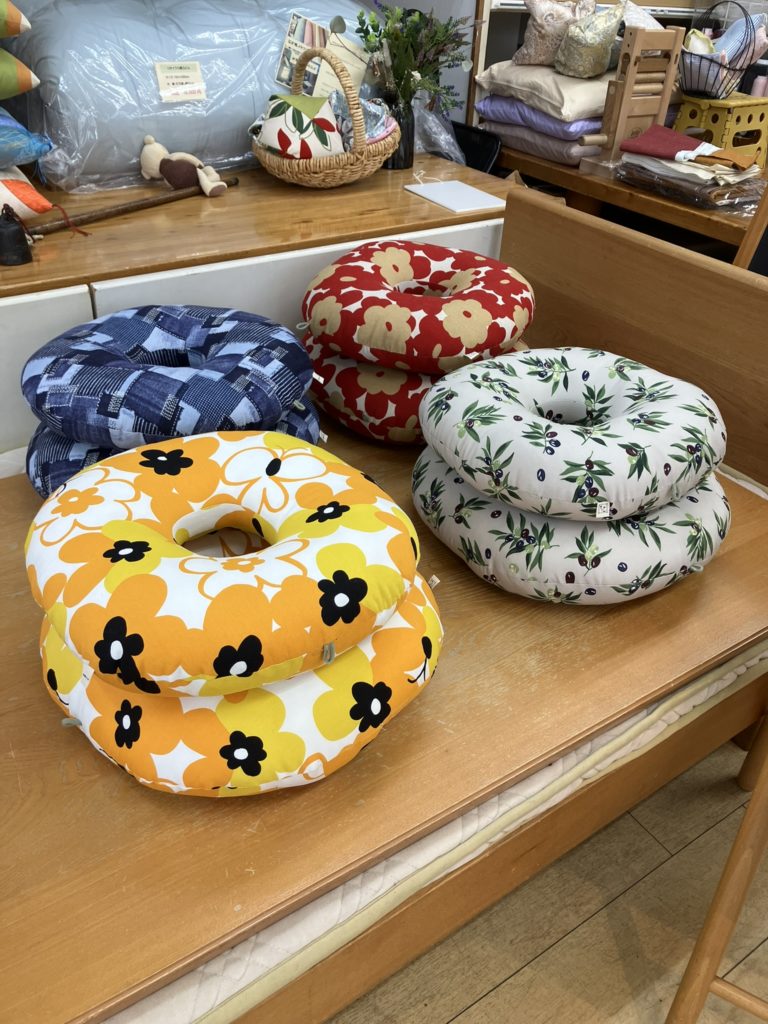 吉田屋ふとん店のドーナツクッションは、座ったときにお尻全体の体重をふんわりと受け止めて、